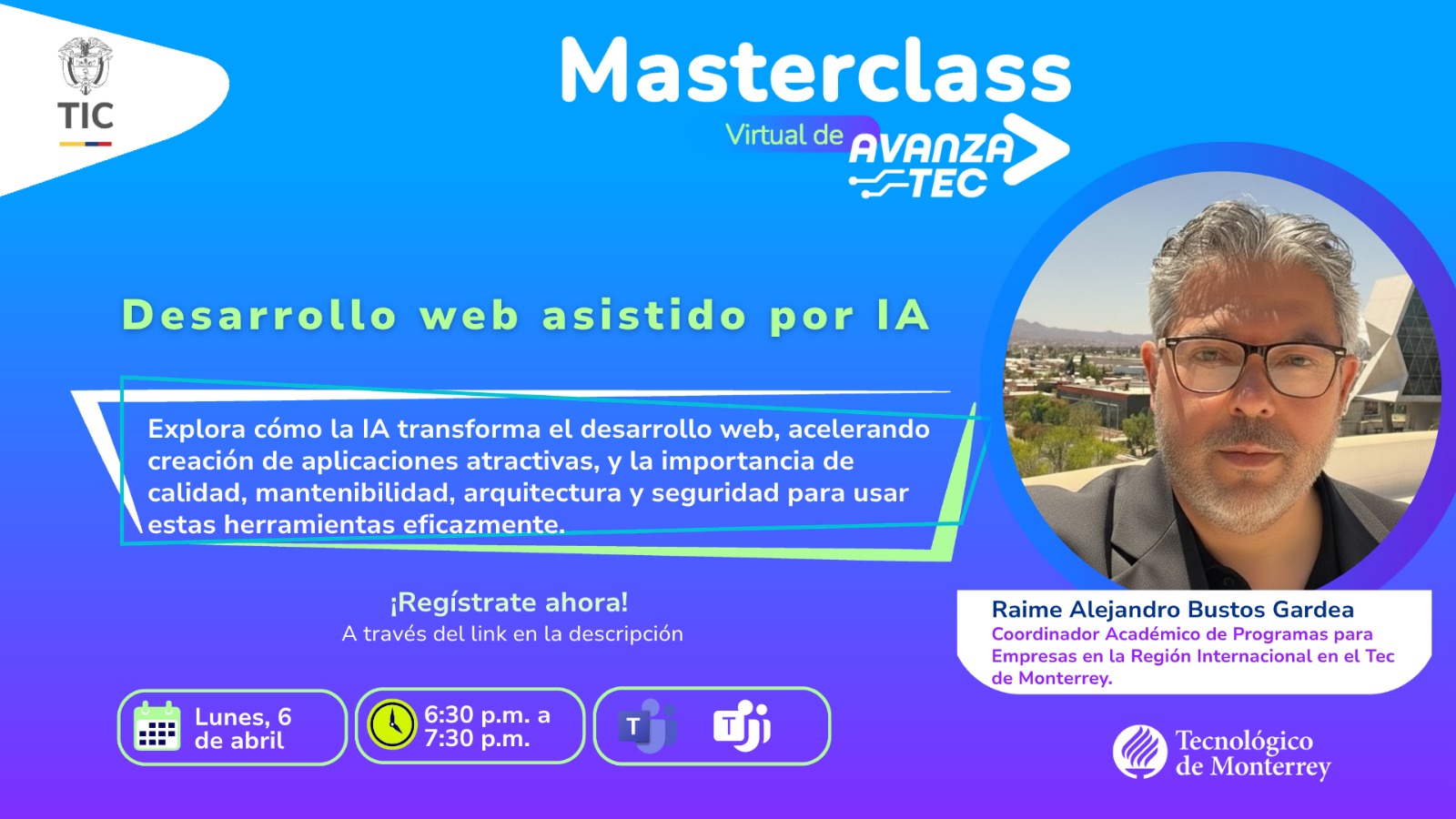 🗓️ Lunes, 6 de abril de 2026 ⏰ 6:30 p.m. a 7:30 p.m. 💻 Modalidad virtual | Conexión vía Teams